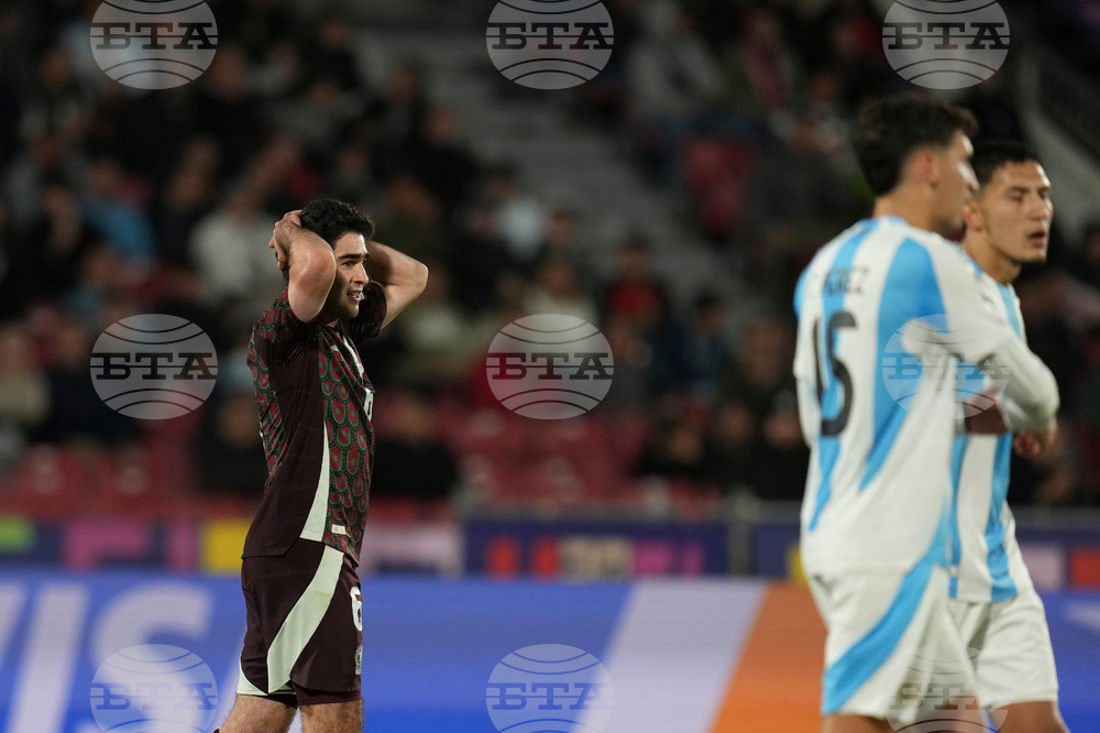 Mexico's Tahiel Jimenez reacts during a FIFA U-20 World Cup quater-final soccer match against Argentina at National Stadium in Santiago, Chile, Saturday, Oct. 11, 2025. (AP Photo/Esteban Felix)