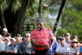 FILE - Tiger Woods grimaces after teeing off on the 12th hole during the final round of the Cadillac Championship golf tournament Sunday, March 9, 2014, in Doral, Fla. (AP Photo/Lynne Sladky, File)