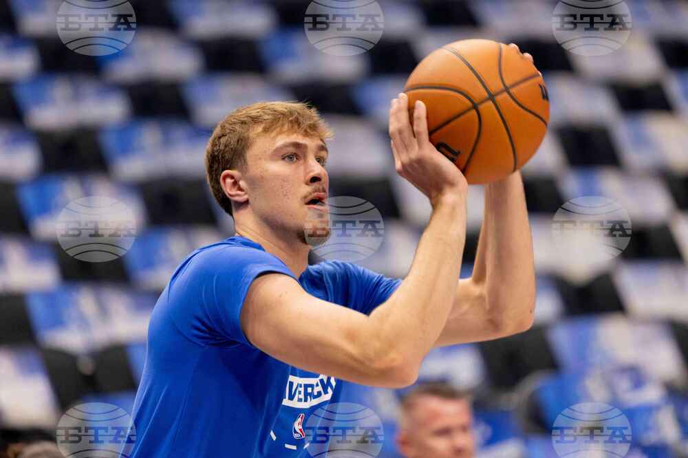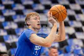 Dallas Mavericks forward Cooper Flagg (32) warms up before an NBA basketball preseason game against the Charlotte Hornets in Dallas, Saturday, Oct. 11, 2025. (AP Photo/Gareth Patterson)