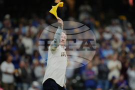 Former Milwaukee Brewers player Paul Molitor acknowledges fans as he prepares to throw out the first pitch before Game 5 of baseball's National League Division Series between the Chicago Cubs and the Milwaukee Brewers, Saturday, Oct. 11, 2025, in Milwaukee. (AP Photo/Kayla Wolf)
