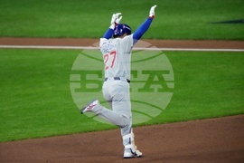 Chicago Cubs' Seiya Suzuki celebrates after hitrting a home run during the second inning of Game 5 of baseball's National League Division Series against the Milwaukee Brewers Saturday, Oct. 11, 2025, in Milwaukee. (AP Photo/Morry Gash)