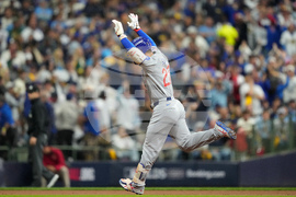 Chicago Cubs right fielder Seiya Suzuki (27) runs the bases after hitting a solo home run against the Milwaukee Brewers during the second inning of Game 5 of baseball's National League Division Series Saturday, Oct. 11, 2025, in Milwaukee. (AP Photo/Kayla Wolf)