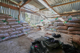 In this photo taken during a trip supervised by pro-military Myanmar media, uniforms of Ta'ang National Liberation Army (TNLA) are seen inside a police station in Kyaukme, northern Shan State, Myanmar, Friday, Oct. 10, 2025. (AP Photo/Aung Shine Oo)