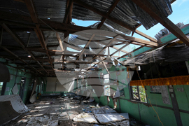 In this photo taken during a trip supervised by pro-military Myanmar media, a damaged fire engine is seen in the Fire Service Department building in Kyaukme, northern Shan State, Myanmar, Friday, Oct. 10, 2025. (AP Photo/Aung Shine Oo)
