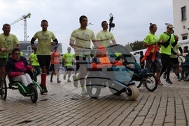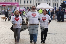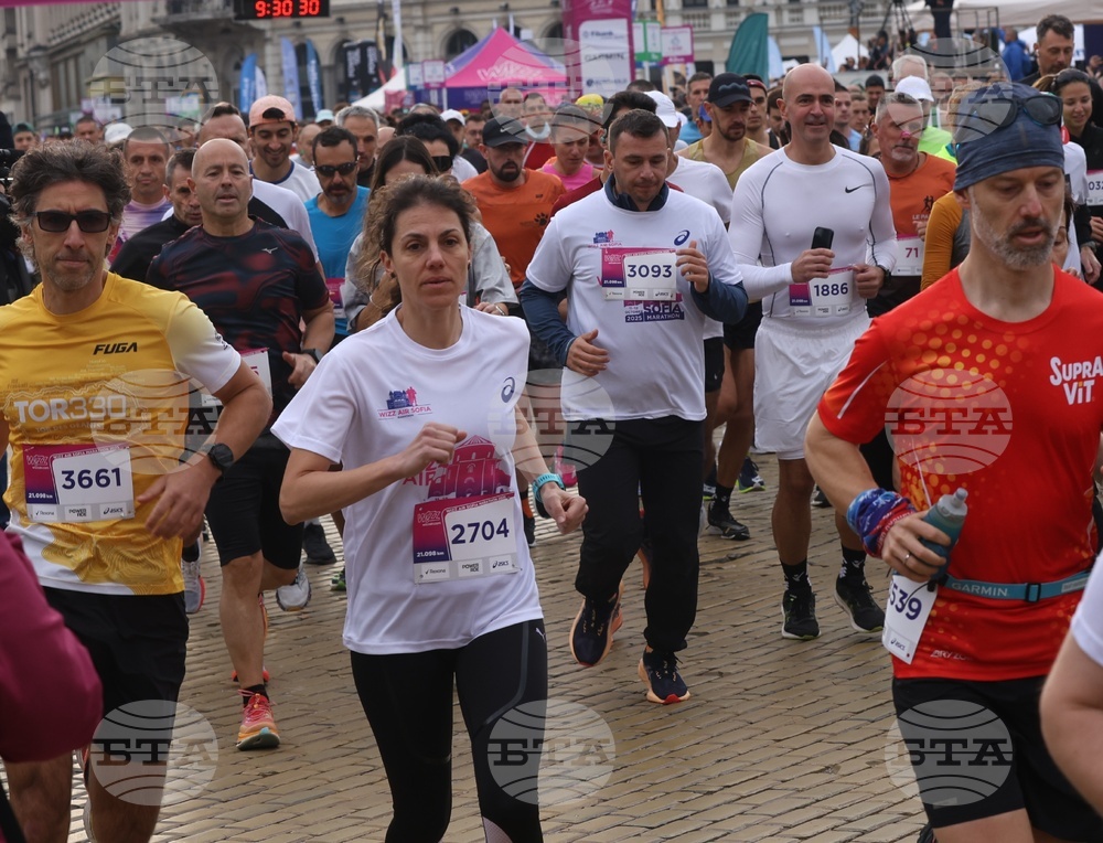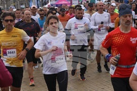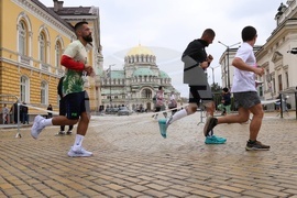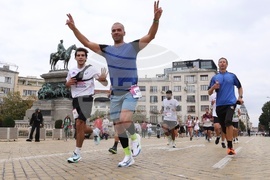 София (12 октомври 2025) В столицата се провежда 42-рия Софийски маратон - „Маратон София 2025“. Над 8000 души от 66 държави са се регистрирали да участват в спортното събитие. То се провежда в два дни, като на 11 октомври е масовият старт на 5 км, докато днес състезанието се провежда на дистанции 10 км, 21 км (полумаратон) и 42 км (маратон). Заради събитието е въведена временна организация на движението. На снимката: Президент на федерацията по волейбол Любомир Ганев (втори вляво).