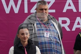 София (12 октомври 2025) В столицата се провежда 42-рия Софийски маратон - „Маратон София 2025“. Над 8000 души от 66 държави са се регистрирали да участват в спортното събитие. То се провежда в два дни, като на 11 октомври е масовият старт на 5 км, докато днес състезанието се провежда на дистанции 10 км, 21 км (полумаратон) и 42 км (маратон). Заради събитието е въведена временна организация на движението. На снимката: Президент на федерацията по волейбол Любомир Ганев (вляво).