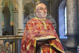 Плевен (12 октомври 2025) Отец Йордан (на снимката) води неделното богослужение в плевенския храм "Света Параксева". В проповедта си той припомни на миряните притчата за сеяча и семената.