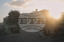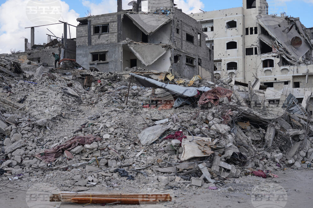 Displaced Palestinians inspect the remains of their destroyed homes in Gaza City, Sunday, Oct. 12, 2025, after Israel and Hamas agreed to a pause in their war and the release of the remaining hostages. (AP Photo/Abdel Kareem Hana)