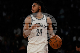 Brooklyn Nets guard Cam Thomas (24) drives during a preseason NBA basketball game between Phoenix Suns and Brooklyn Nets in Macao, Sunday, Oct. 12, 2025. (AP Photo/Vernon Yuen)