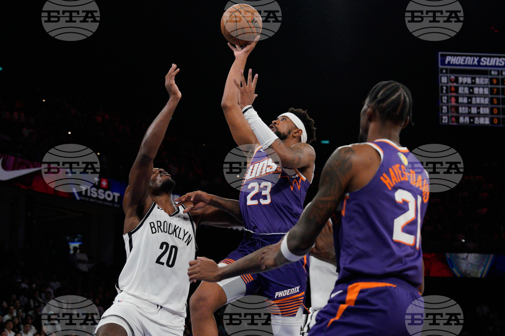 A general view is seen before a preseason NBA basketball game between Phoenix Suns and Brooklyn Nets in Macao, Sunday, Oct. 12, 2025. (AP Photo/Vernon Yuen)