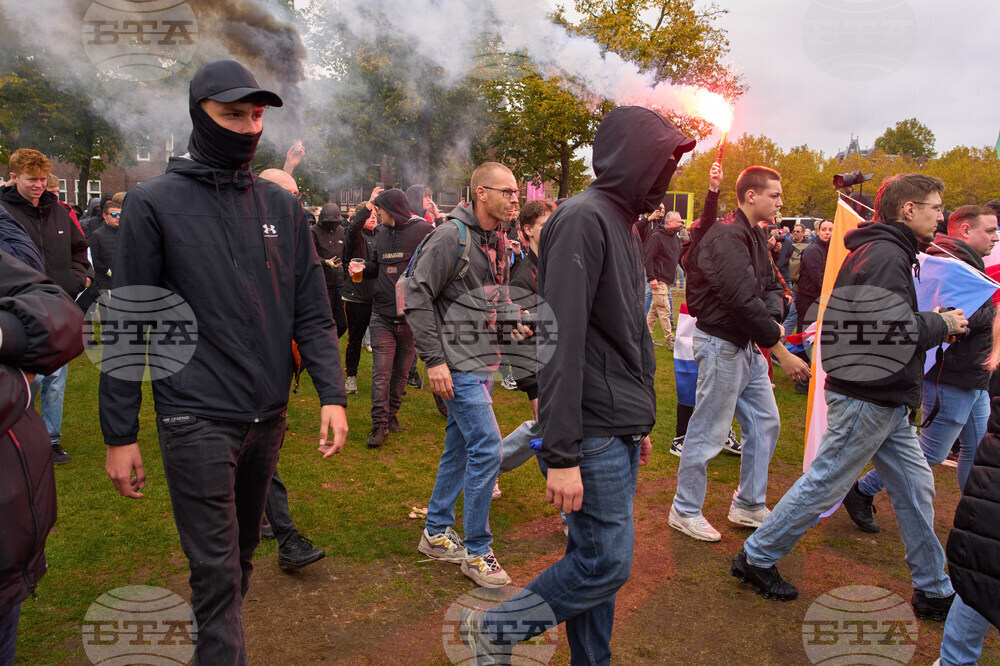 Anti-immigration protesters march during a demonstration in Amsterdam, Netherlands, Sunday, Oct. 12, 2025, ahead of the Oct. 29 elections in the Netherlands. (AP Photo/Peter Dejong)