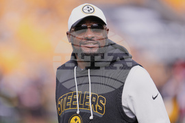 Pittsburgh Steelers head coach Mike Tomlin smiles before an NFL football game against the Cleveland Browns in Pittsburgh, Sunday, Oct. 12, 2025. (AP Photo/Gene J. Puskar)