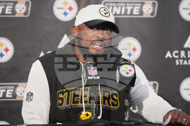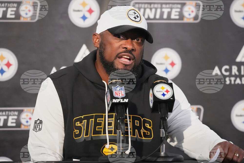 Pittsburgh Steelers head coach Mike Tomlin speaks during a news conference following an NFL football game against the Cleveland Browns in Pittsburgh, Sunday, Oct. 12, 2025. (AP Photo/Gene J. Puskar)