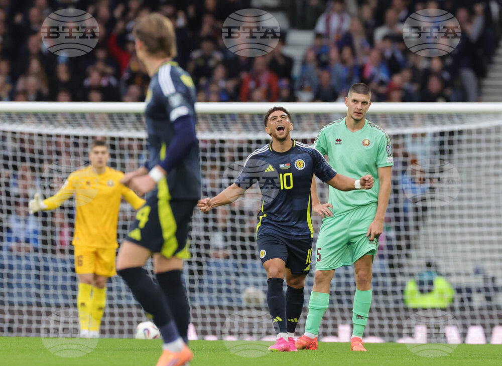 Belarus' Evgeni Malashevich scores the goal later disallowed after a VAR decision during the World Cup 2026 group C qualifying soccer match between Scotland and Belarus at Hampden Park in Glasgow, Scotland, Sunday, Oct. 12, 2025. (Steve Welsh/PA via AP)