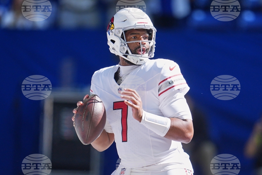 Arizona Cardinals quarterback Jacoby Brissett (7) takes the field befofre an NFL football game against the Indianapolis Colts, Sunday, Oct. 12, 2025, in Indianapolis, Ind. (AP Photo/AJ Mast)