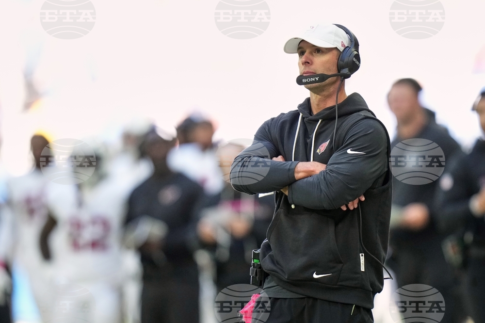 Arizona Cardinals head coach Jonathan Gannon watches during the second half of an NFL football game against the Indianapolis Colts Sunday, Oct. 12, 2025, in Indianapolis. (AP Photo/AJ Mast)