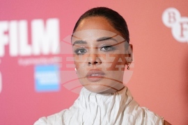 Tessa Thompson poses for photographers upon arrival at the premiere of the film "Hedda" during the London film festival in London, Sunday, Oct. 12, 2025. (Photo by Scott A Garfitt/Invision/AP)