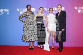 Nia DaCosta, from left, Imogen Poots, , Tessa Thompson, and Nina Hoss pose for photographers upon arrival at the premiere of the film "Hedda" during the London film festival in London, Sunday, Oct. 12, 2025. (Photo by Scott A Garfitt/Invision/AP)