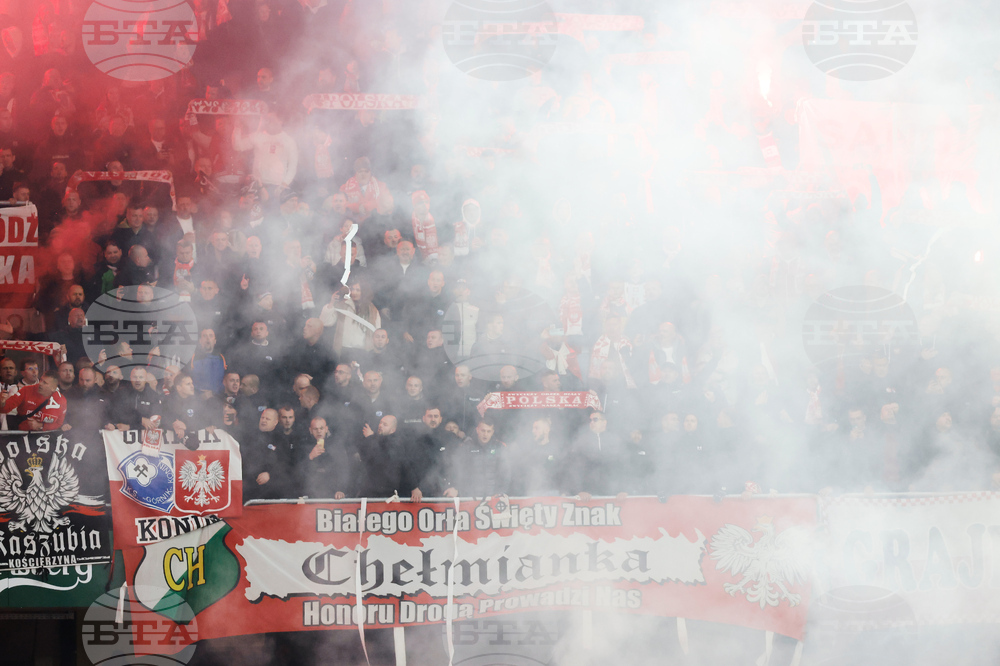 Poland fans light up flares during a World Cup 2026 group G qualifying soccer match between Lithuania and Poland at Darius and Girenas stadium in Kaunas, Lithuania, Sunday, Oct. 12, 2025. (AP Photo/Mindaugas Kulbis)