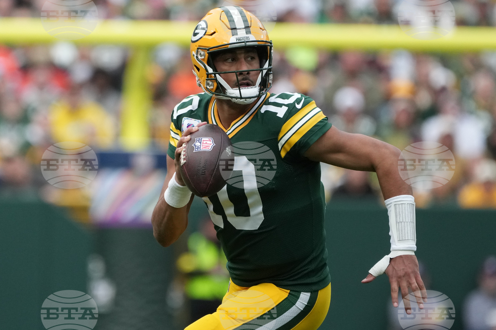 Green Bay Packers quarterback Jordan Love (10) runs out of the pocket against the Cincinnati Bengals in the first half of an NFL football game, Sunday, Oct. 12, 2025, in Green Bay, Wis. (AP Photo/Morry Gash)