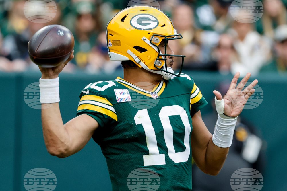 Green Bay Packers quarterback Jordan Love (10) works in the pocket against the Cincinnati Bengals in the first half of an NFL football game, Sunday, Oct. 12, 2025, in Green Bay, Wis. (AP Photo/Mike Roemer)