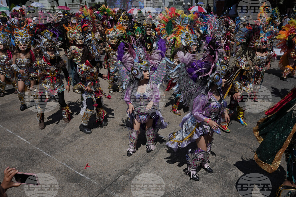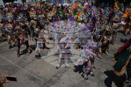 Dancers from across Guatemala perform during a festival of tradicional dances known as "convites," in Guatemala City, Sunday, Oct. 12, 2025. (AP Photo/Moises Castillo)