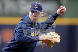 Milwaukee Brewers shortstop Andruw Monasterio warms up during batting practice ahead of Game 1 of baseball's National League Championship Series between the Milwaukee Brewers and the Los Angeles Dodgers on Sunday, Oct. 12, 2025, in Milwaukee. (AP Photo/Brynn Anderson)