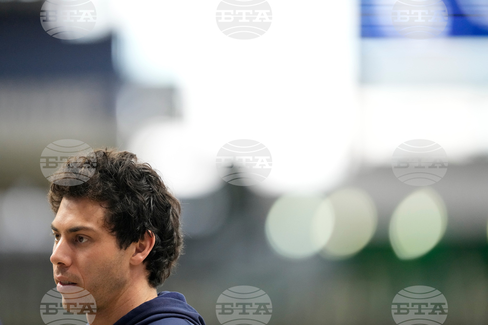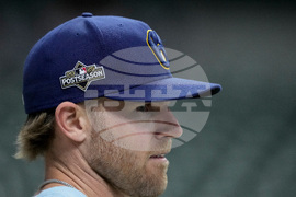 Milwaukee Brewers first baseman Jake Bauers watches during batting practice ahead of Game 1 of baseball's National League Championship Series between the Milwaukee Brewers and the Los Angeles Dodgers on Sunday, Oct. 12, 2025, in Milwaukee. (AP Photo/Brynn Anderson)