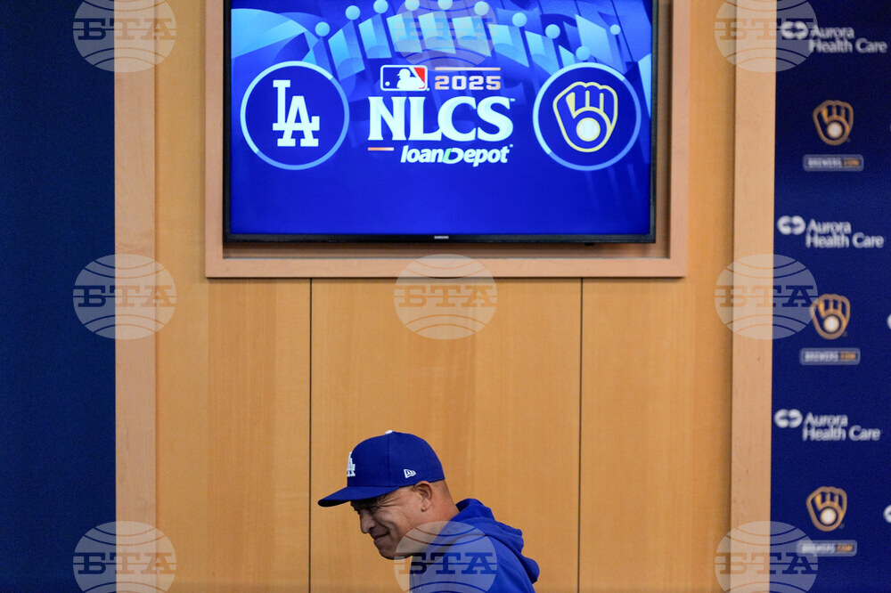 Los Angeles Dodgers manager Dave Roberts speaks during a news conference ahead of Game 1 of baseball's National League Championship Series between the Milwaukee Brewers and the Los Angeles Dodgers on Sunday, Oct. 12, 2025, in Milwaukee. (AP Photo/Ashley Landis)