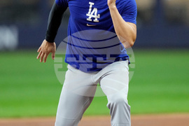 Los Angeles Dodgers pitcher Blake Snell throws during batting practice ahead of Game 1 of baseball's National League Championship Series between the Milwaukee Brewers and the Los Angeles Dodgers on Sunday, Oct. 12, 2025, in Milwaukee. (AP Photo/Ashley Landis)