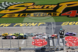 Drivers get the green flag at the start of a NASCAR Cup Series auto race Sunday, Oct. 12, 2025, in Las Vegas. (AP Photo/Steve Marcus)