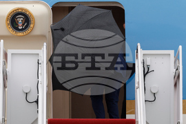 President Donald Trump boards Air Force One upon his arrival at Joint Base Andrews, Md., Sunday, Oct. 12, 2025. (AP Photo/Luis M. Alvarez)