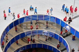 Fans walk up a ramp leading to a seating area inside Arrowhead Stadium before an NFL football game between the Kansas City Chiefs and the Detroit Lions Sunday, Oct. 12, 2025, in Kansas City, Mo. (AP Photo/Charlie Riedel)