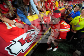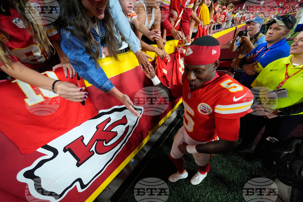 Kansas City Chiefs wide receiver Hollywood Brown heads off the field as fans cheer following an NFL football game against the Detroit Lions Sunday, Oct. 12, 2025, in Kansas City, Mo. (AP Photo/Charlie Riedel)