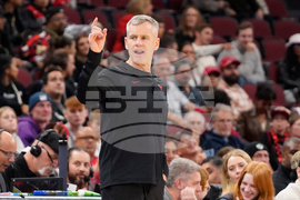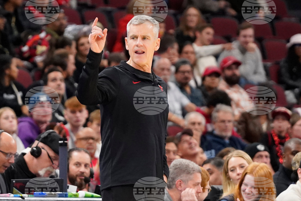 Chicago Bulls head coach Billy Donovan gestures to his team during the second half against the Milwaukee Bucks in a preseason NBA basketball game, Sunday, Oct. 12, 2025, in Chicago. (AP Photo/David Banks)