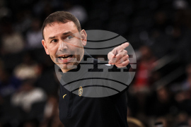 Denver Nuggets head coach David Adelman reacts during the first half of a preseason NBA basketball game against the Los Angeles Clippers, Sunday, Oct. 12, 2025, in Inglewood, Calif. (AP Photo/Etienne Laurent)