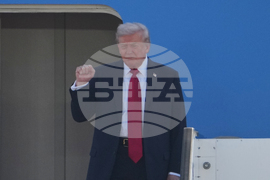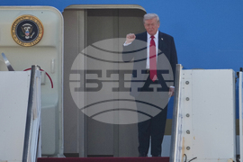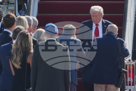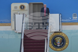 President Donald Trump arrives on Air Force One at Ben Gurion Airport near Tel Aviv, Israel, Monday, Oct. 13, 2025. (AP Photo/Ariel Schalit)