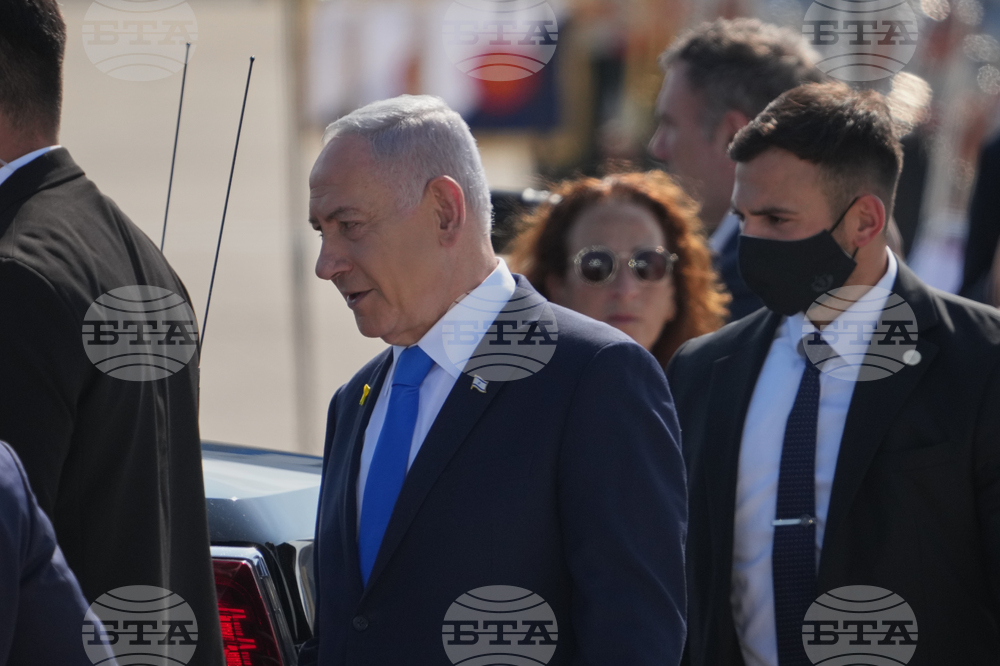 Israeli Prime Minister Benjamin Netanyahu walks after welcoming U.S. President Donald Trump at Ben Gurion Airport near Tel Aviv, Israel, Monday, Oct. 13, 2025. (AP Photo/Ariel Schalit)
