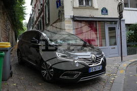 A car carrying former French President Nicolas Sarkozy leaves his home before appearing at the National Financial Prosecutor's office to set a date and location for his incarceration, Monday, Oct. 13, 2025 in Paris. (AP Photo/Aurelien Morissard)