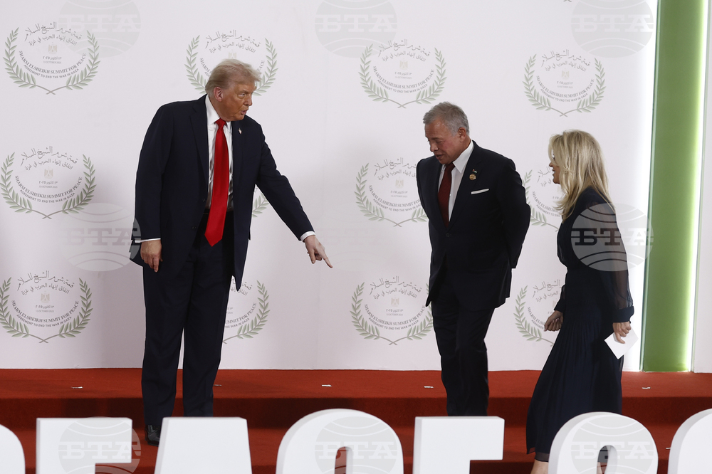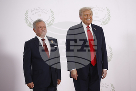President Donald Trump and King Abdullah II of Jordan pose during the family picture at the Gaza International Peace Summit, in Sharm el-Sheikh, Egypt, Monday, Oct.13 2025. (Yoan Valat, Pool photo via AP)