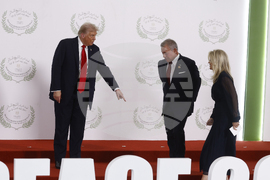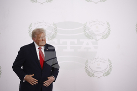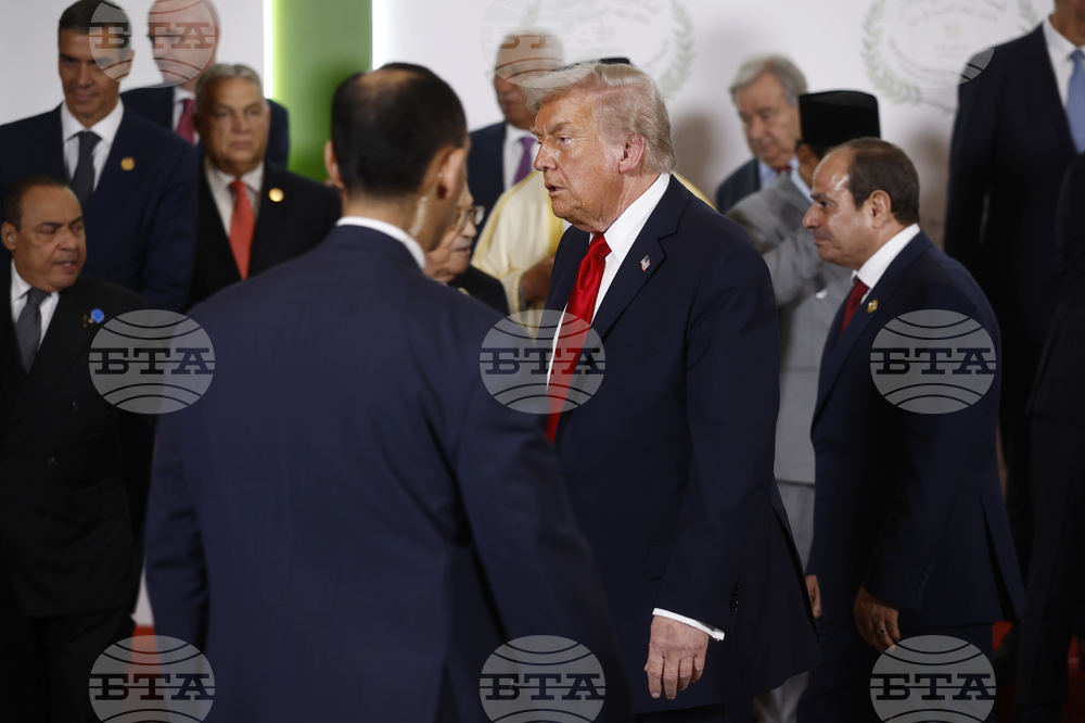 President Donald Trump waits during the greetings ceremony before the family picture at the Gaza International Peace Summit, in Sharm el-Sheikh, Egypt, Monday, Oct.13 2025. (Yoan Valat, Pool photo via AP)