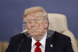 President Donald Trump looks on during the signature ceremony at the Gaza International Peace Summit, in Sharm el-Sheikh, Egypt, Monday, Oct.13 2025. (Yoan Valat, Pool photo via AP)