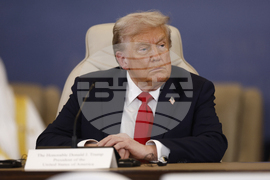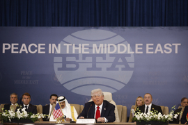 President Donald Trump attends a world leaders' summit on ending the Gaza war, in Sharm el-Sheikh, Egypt, Monday, Oct. 13, 2025. (Suzanne Plunkett, Pool Photo via AP)