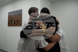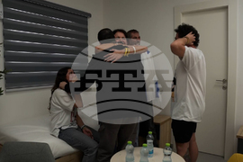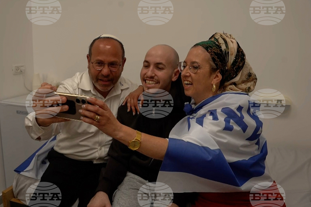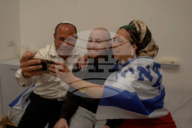 Herkin family's first conversation with Maxim, after being released from Hamas, in Israel on Monday, Oct. 13, 2025. (IDF via AP)