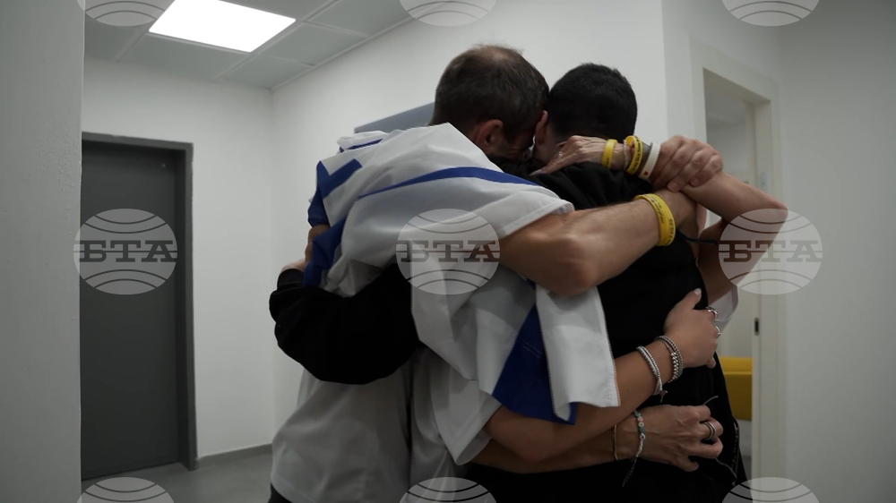 Bar Kupershtein, left, meets with his family after being released from Hamas captivity, on Monday, Oct. 13, 2025. (IDF via AP)