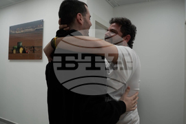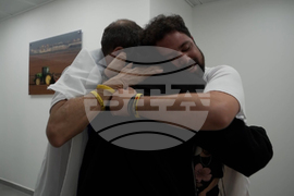 Maksym Harkin, right, meets with his family after being released from Hamas captivity, on Monday, Oct. 13, 2025. (IDF via AP)