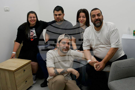 Yosef-Chaim Ohana’s, front, meets with family members after being released from Hamas captivity, on Monday, Oct. 13, 2025. (IDF via AP)