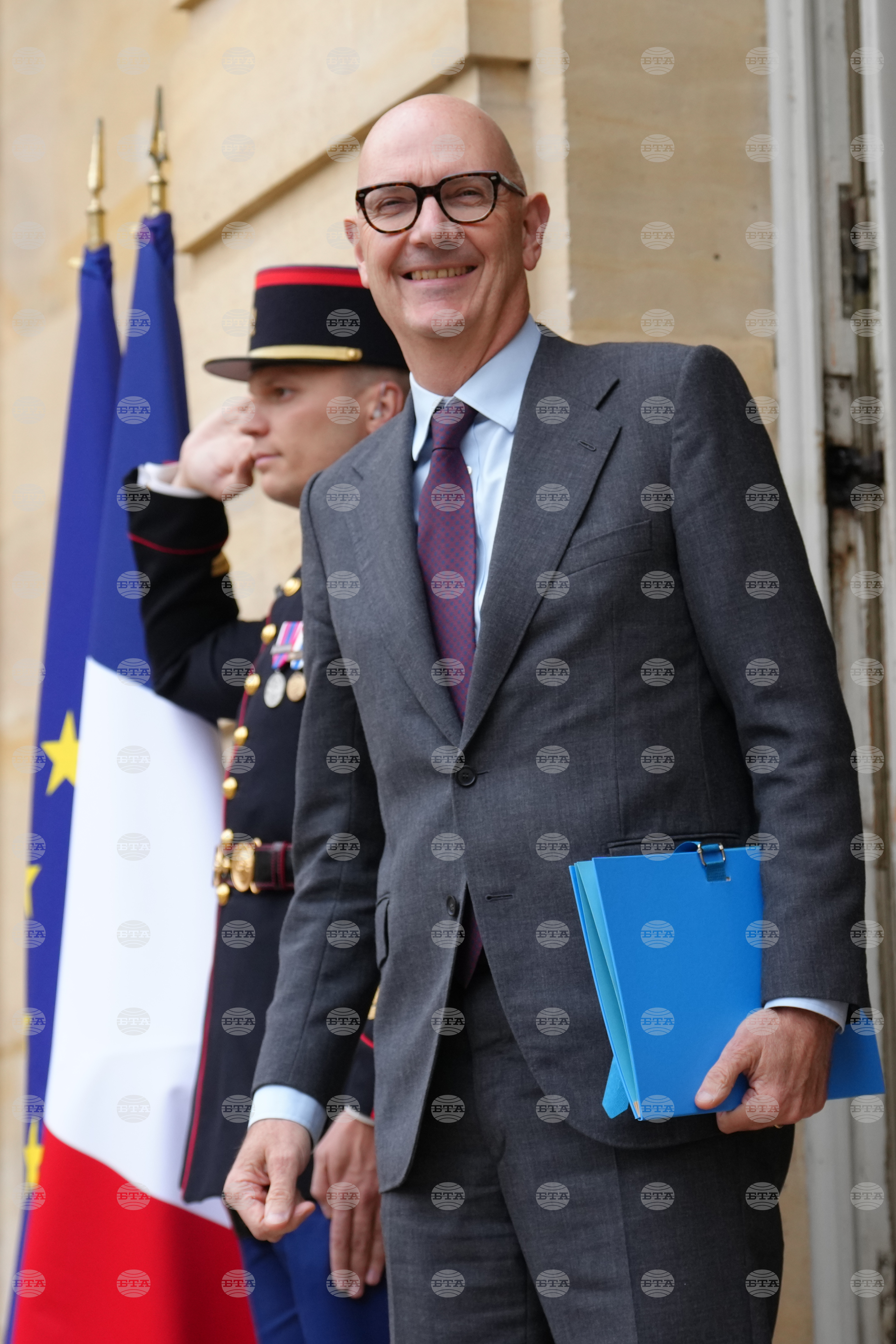 Newly appointed Economy, Finance and Industry Minister Roland Lescure arrives for a meeting with French Prime Minister Sebastien Lecornu, Monday, Oct. 13, 2025 in Paris. (AP Photo/Aurelien Morissard)