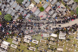 People attend the funeral of popular Bosnian folk singer Halid Beslic, who was also widely known for his humanitarian work during and after the country's bloody 1992-95 war, in Sarajevo, Bosnia, Monday, Oct. 13, 2025. (AP Photo/Armin Durgut)
