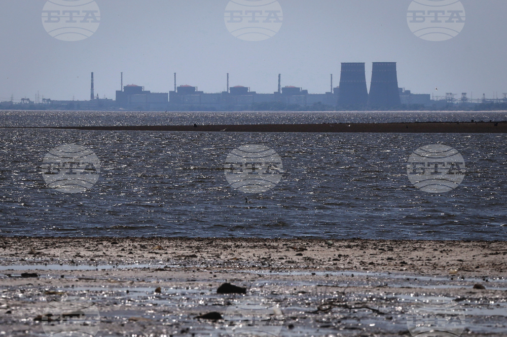 FILE - The Zaporizhzhia nuclear power plant, Europe's largest, stands in the background of the shallow Kakhovka Reservoir after the dam collapse, in Energodar, Russian-occupied Ukraine, June 9, 2023. (AP Photo/Kateryna Klochko, File)